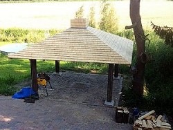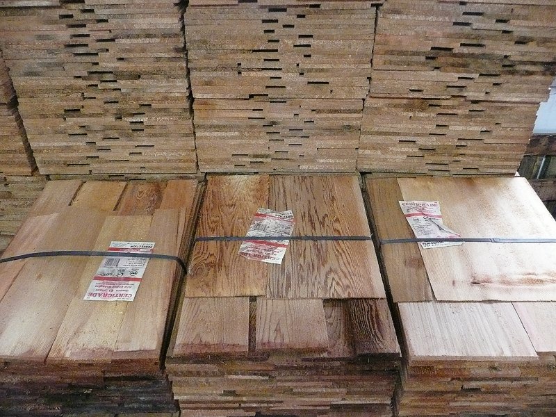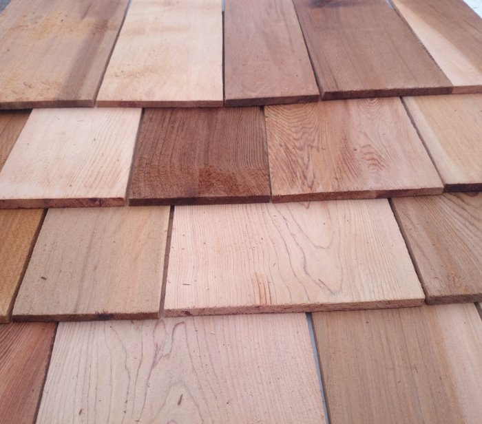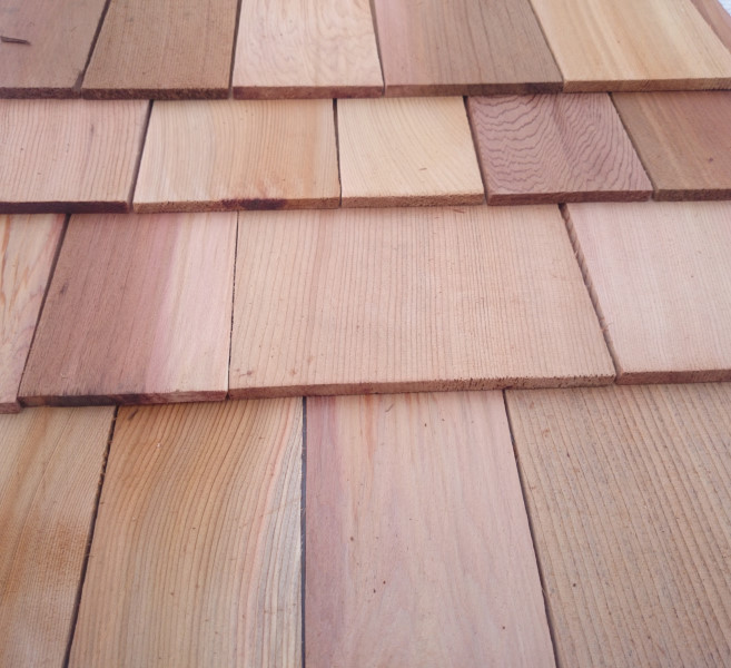 Red Cedar shingles zijn taps gezaagde plankjes welke overlappend geplaatst worden. Er zijn drie verschillende lengte maten en verschillende kwaliteiten.
